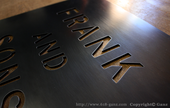 どちらのサインプレートも、お客様から元になるデザインをいただいて、レーザー加工時にパーツが落ちてしまわないようにステンシル書体のようにデザインを修正しています。