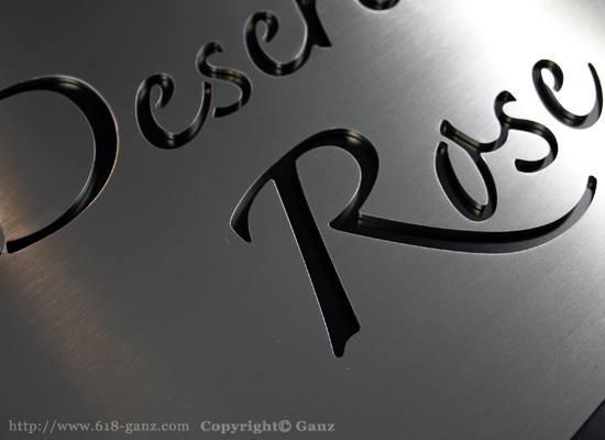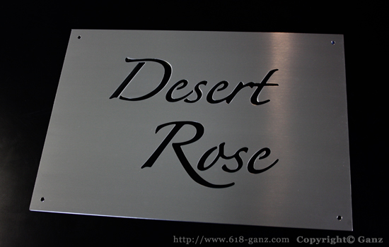 こちらは、ステンレスのヘアラインプレートに抜き文字でレーザー加工した例です。