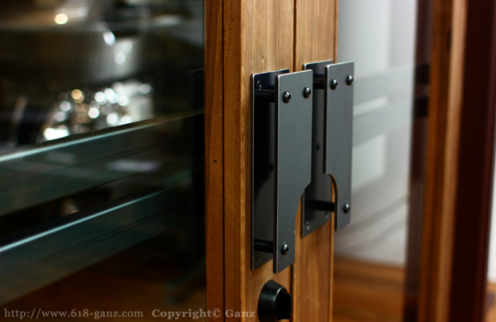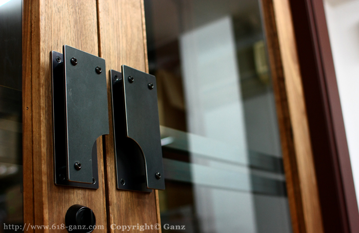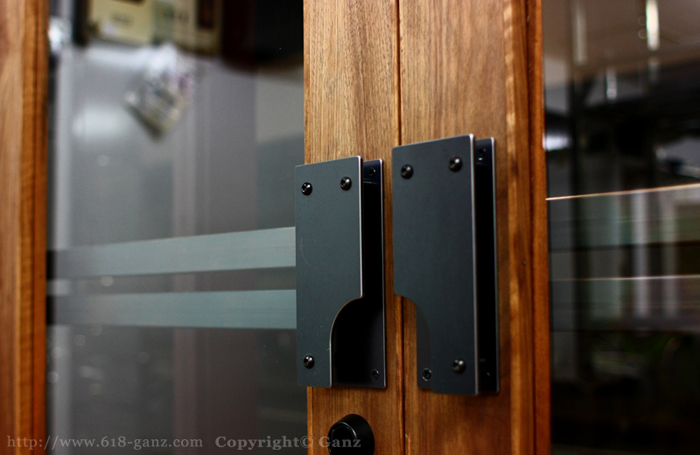 実際にはクローザーのロックを効かせて開放状態で使用することも多く、店内(室内側)からロックを解除する為に引き込むという場面も少なくないため、このような構造にしました。