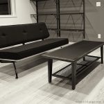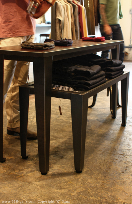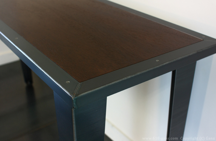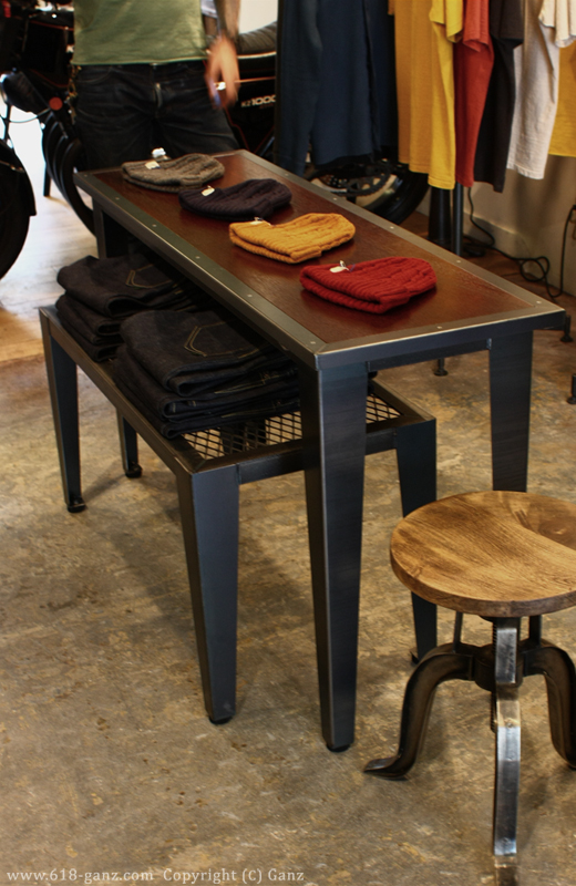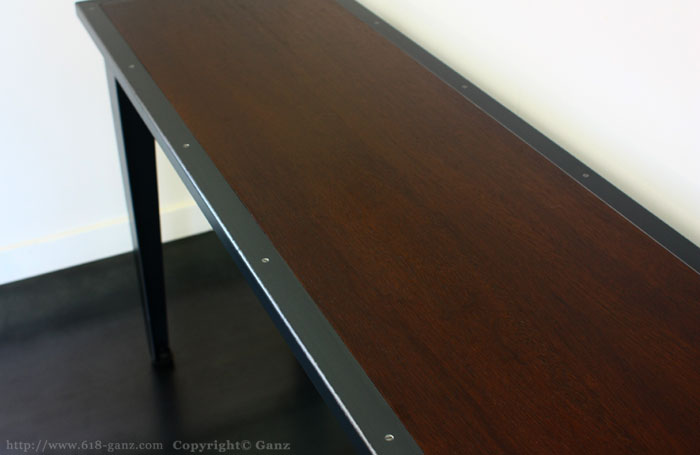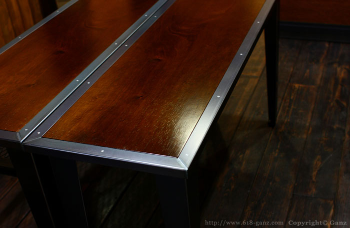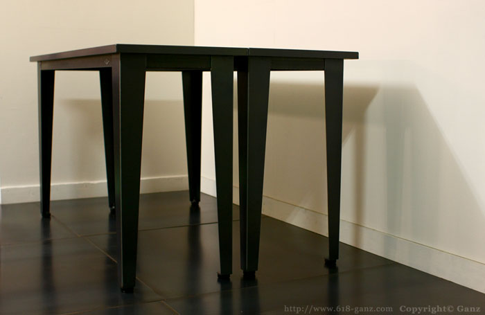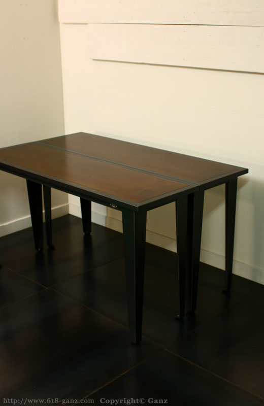 Wood と Iron Frame の天板に テーパーの脚を組み合わせたシンプルなテーブルです。