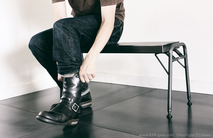 扱いやすいちょっと低めの設定で、お客様の休憩用にはもちろん靴の試着、特にブーツの試着がしやすい高さになっています。