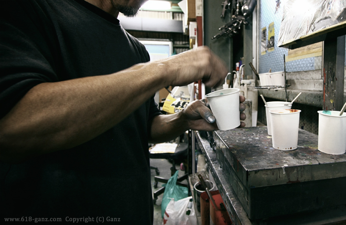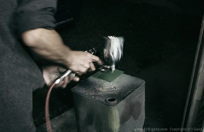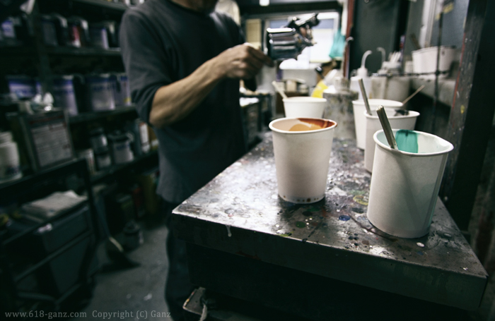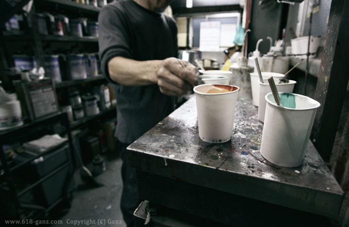 テストピースをペイントして、それを基準にして 更に僕の好みを探りながら理想の色に近付けて行く作業を繰り返します。