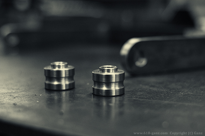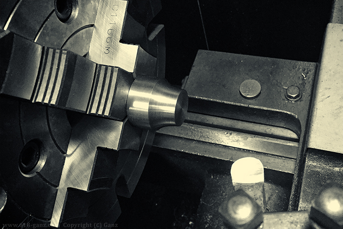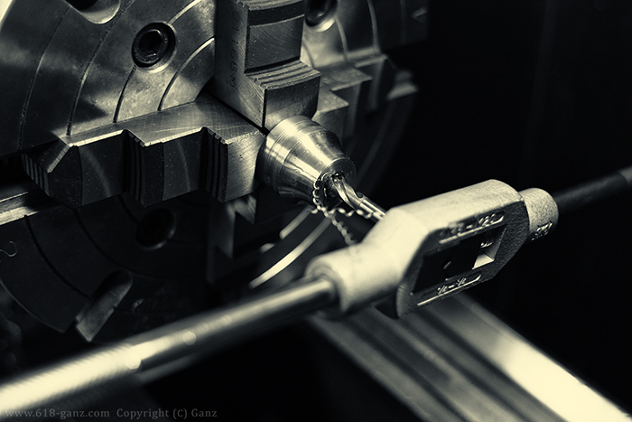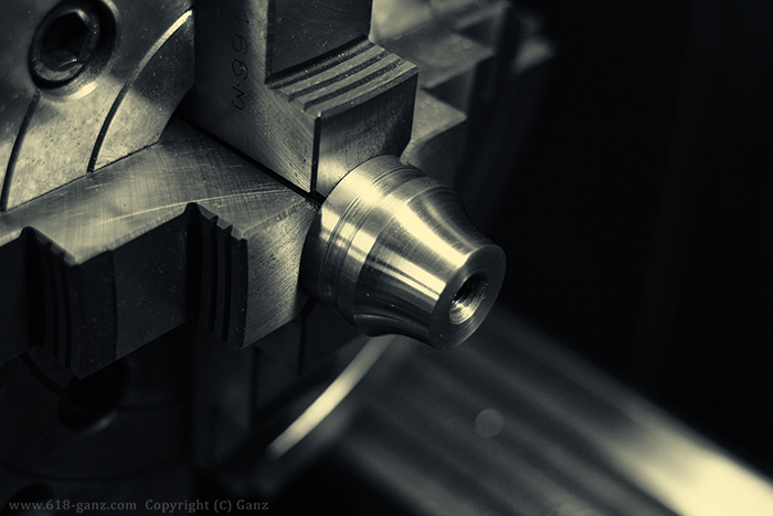 外周に装飾の溝を掘って、センターにタップをたてて雌ネジをきります。