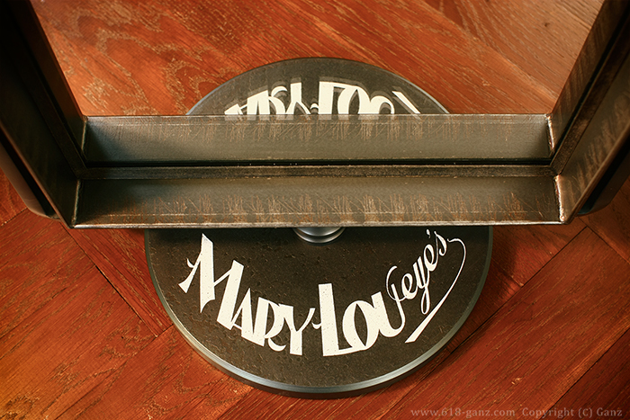 鉄の経年変化とマッチするよう ペイントでロゴ入れしていきます。