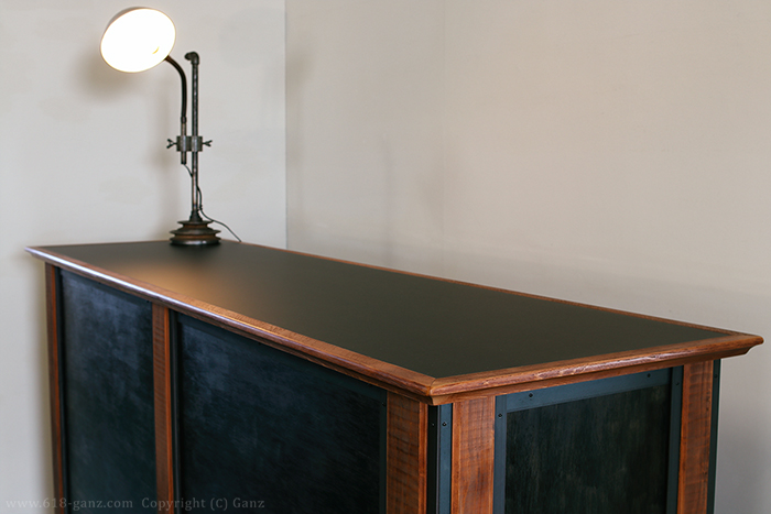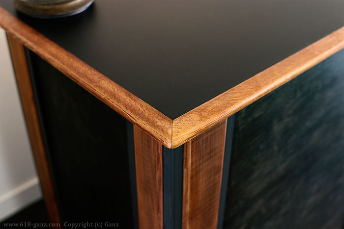 天板にはメラミン化粧板(デコラ)を用いて 外周をWOODでモールディングしました。