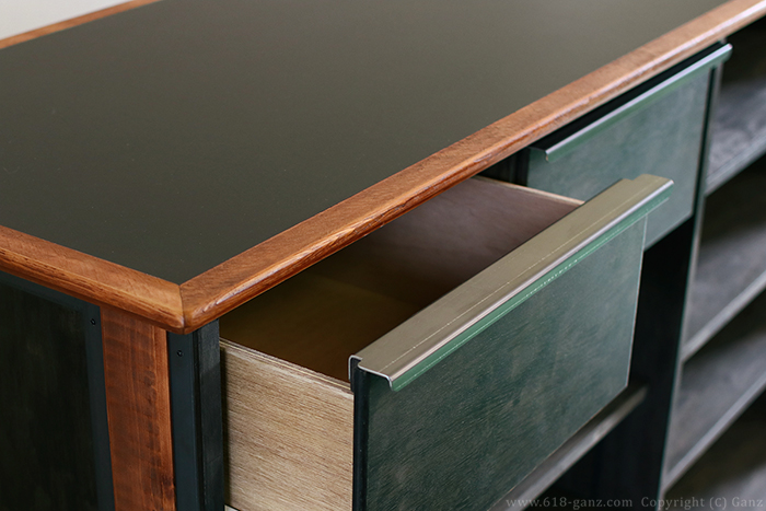 内側のレイアウトは 深さのあるドロワーと 間隔を自由に調整できる棚板で