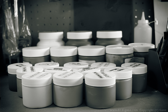 基本原色から調色して 自分が好きなカラーはデータ化してあります。