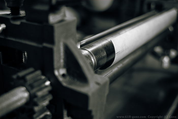 続いてシートメタルをロールベンダーで筒状に加工していきます。