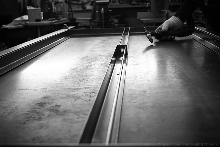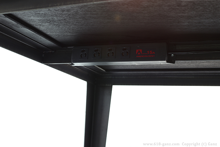 今回はパソコンのケーブル類をスッキリまとめるために天板裏のフレームに細工をしています。