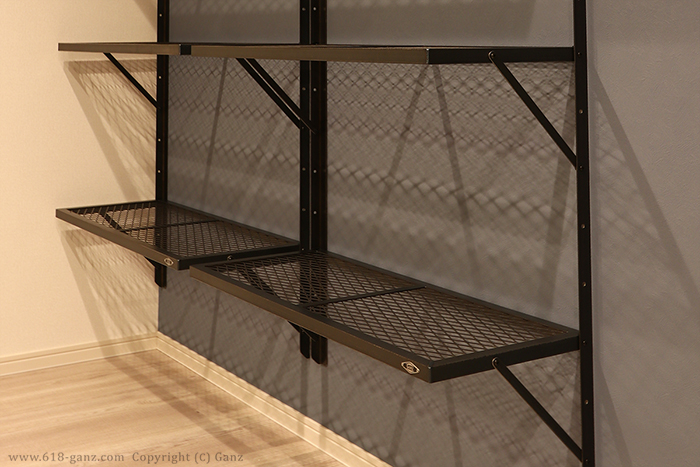 棚の表裏はどちらでも使える様に設計していますがGANZプレートの段だけ表裏の方向性ができてしまいます。