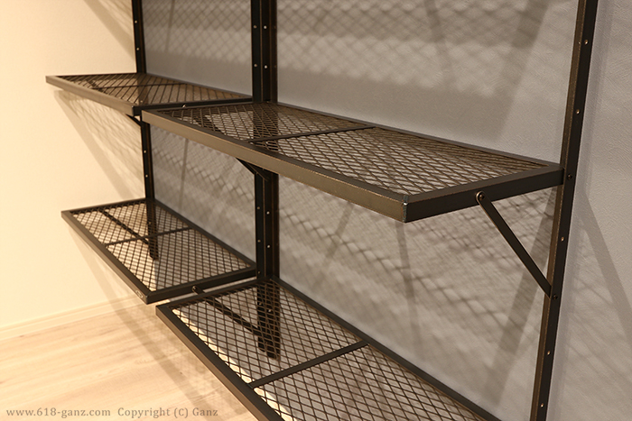棚の高さが変えられたり、運送サイズが小さく済むなどイメージ以上にメリットが多いアイアンメッシュシェルフです。