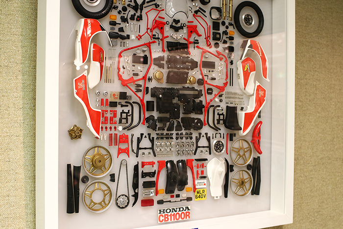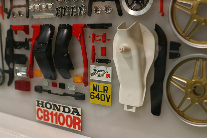 壁にディスプレイされた塗装後のパーツが、なんだか新鮮に見えました。