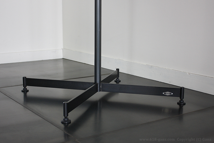 脚部はシンプルな構造でありながら、安定感を確保するサイズ感と、4点にアジャスター構造を組み込みむことで、コンクリート(モルタル)や古材のウッドフロアなど凸凹した床面にも安定して設置することが可能です。