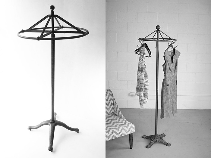 黒皮鉄の重厚感を生かして、細部のディティールを追求しながら無駄なものを排除したシンプルなハンガーラックに仕上げています。
