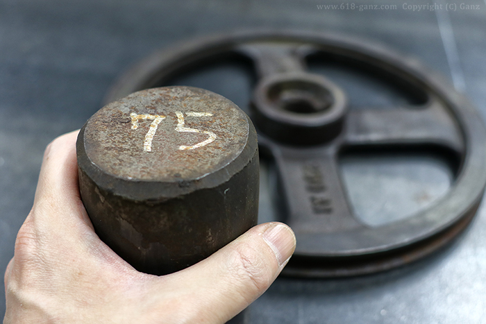 支柱のパイプを溶接してから、錆びたプーリーと黒皮の支柱に合わせてセンターボスを仕上げていきます。