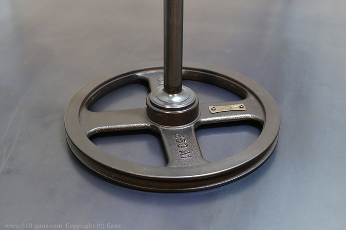 それからベース【脚】の部分に使用したのは、古い機械で使用されていた「プーリー」です。