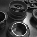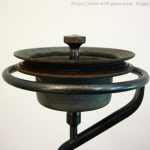 脚の部分に使用したのは、画像右側のプーリーで、古い機械で使用されていたものです。