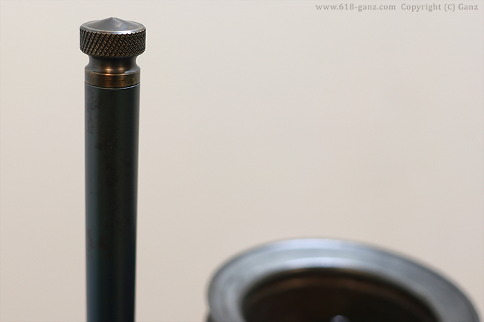 トップの装飾部分は、真鍮を旋盤で削り出し、ローレット加工後にエイジングしてワンオフで製作しています。