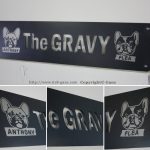 黒皮鉄板にレーザー加工を施して、ロゴや文字を切り抜くことで、重厚感のある独特な雰囲気のアイアンサインプレートに仕上げています。