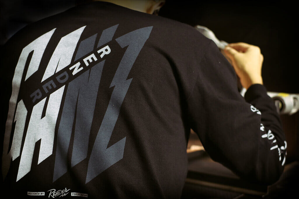RENDER×GANZ コラボレーション・L/S Tシャツ RENDER にデザインを依頼し、GANZにてオリジナルカラーの調色&プリントを施して完成した、コラボレーション・ロングスリーブTシャツがリリースされました。