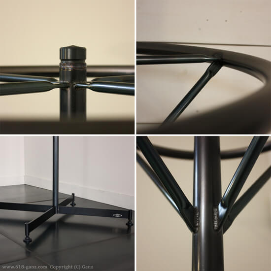 トップエンドの装飾は削り出しで制作し、プレス加工を施したパイプフレームによりサークル部分の振れ(円周方向)を抑えています。