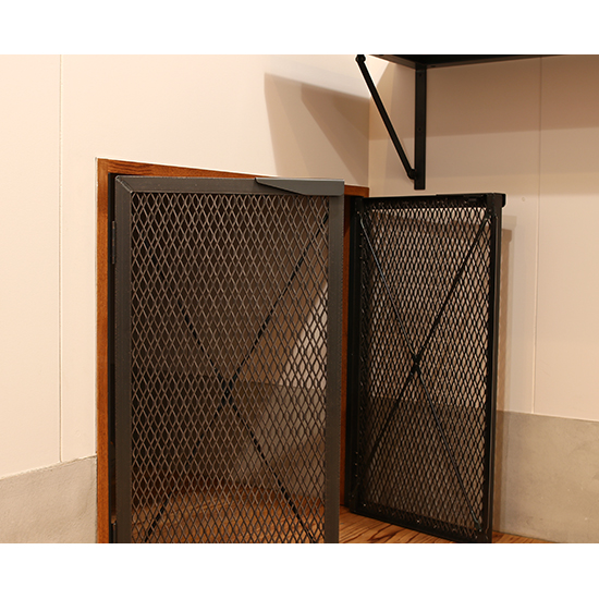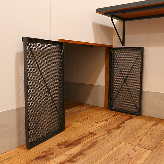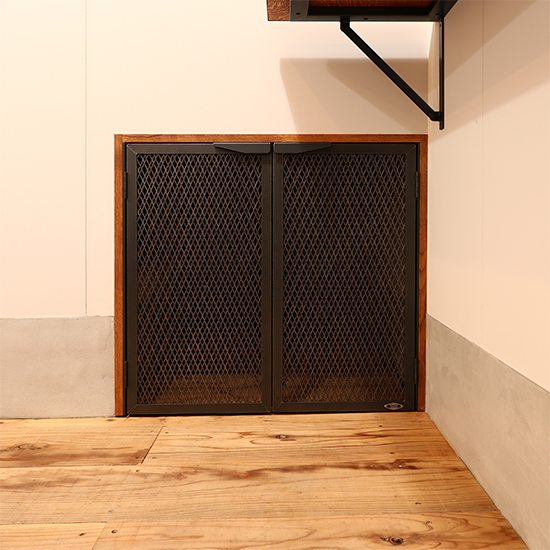 収納スペース用に観音開きのメッシュドアを制作させていただきました。