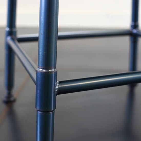 テーパーにレイアウトしたパイプフレームと、シートメタルから制作したシートベースは、シャープで無骨な鉄製品の魅力を凝縮しています。