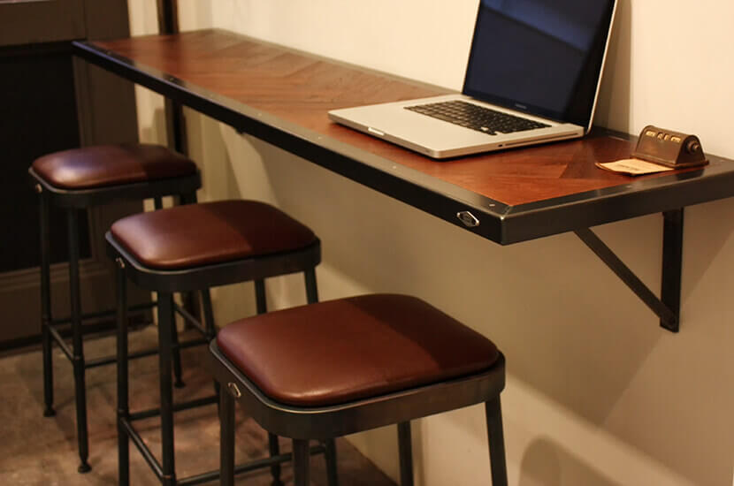 ・チーク材ヘリンボーンカウンター&アイアンスツール