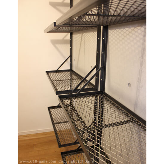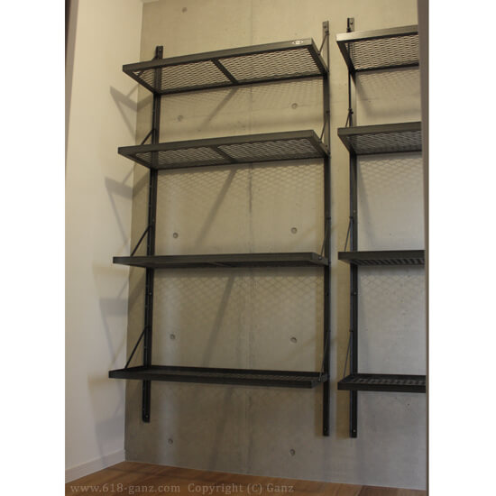 ・壁付けメッシュシェルフのオーダー製作例(リビング・ガレージ)