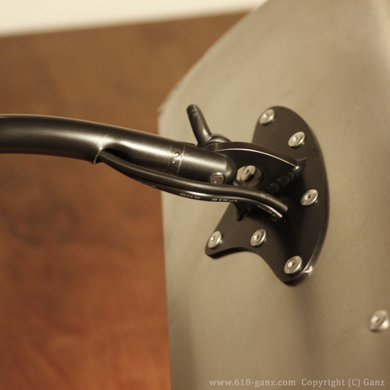 アルミのシェードは可動式すので、ウィングボルトで上下の傾きの調整が可能です。