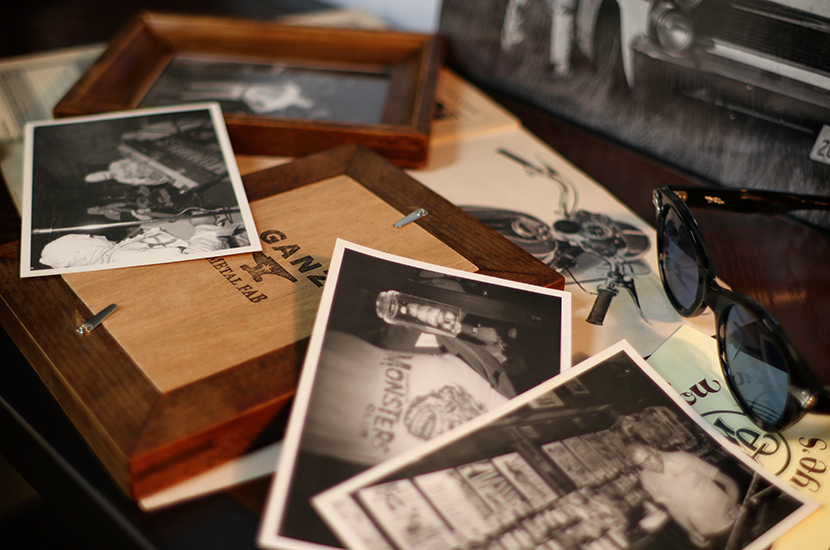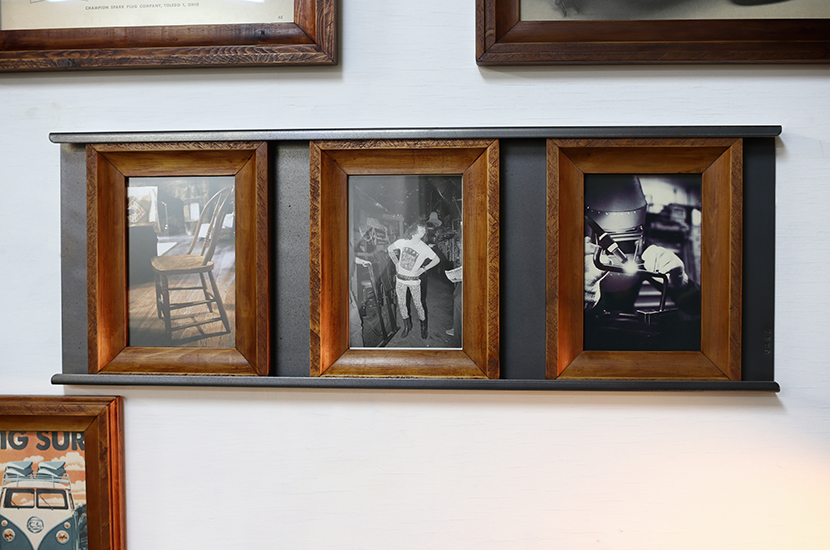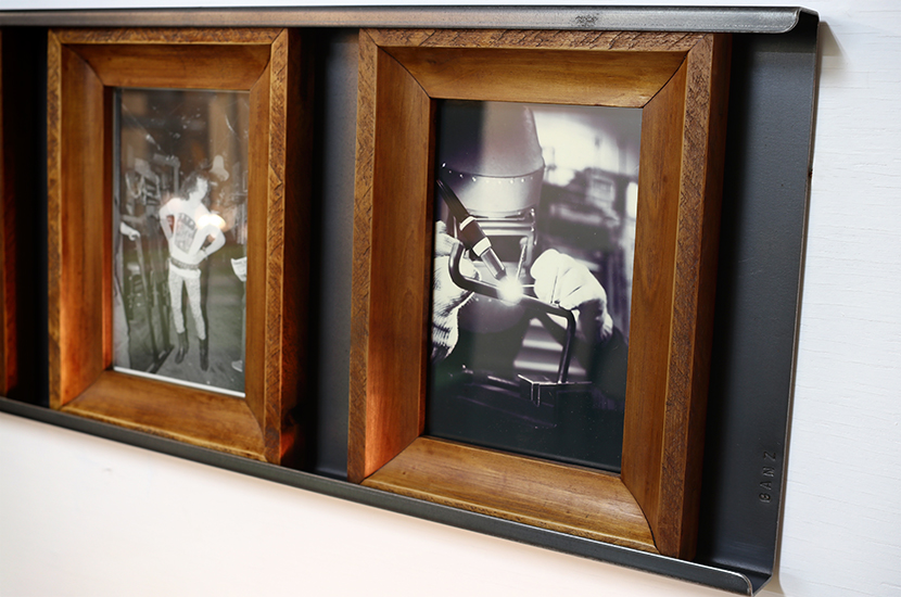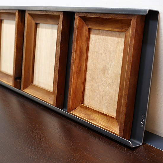 ウッドフレームをレール状の鉄製フレームに横からスライドさせてセットする構造です。
